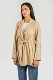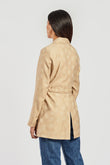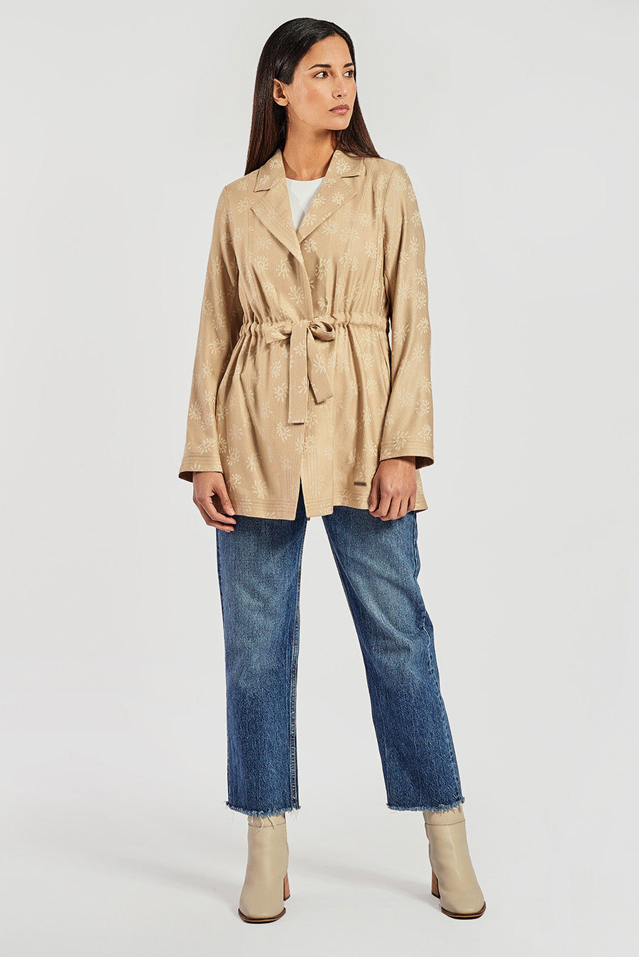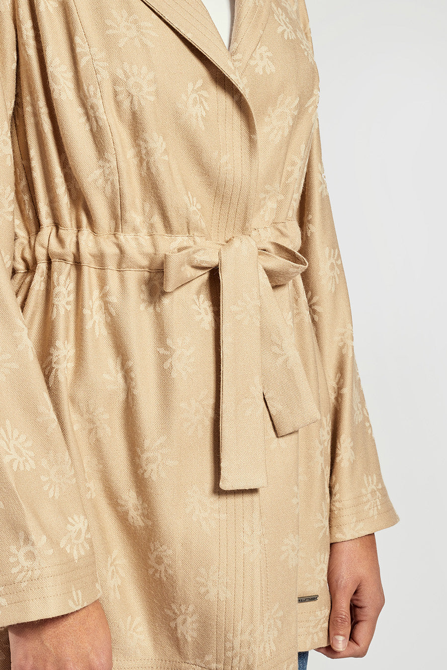 Prenda exclusiva de la colección hecha en bamboo y baby alpaca. Resalta la silueta por su cinturón y estampado minimalista. Sacón ideal para darle un toque de personalidad a cualquier look. | Material predominante: Bamboo