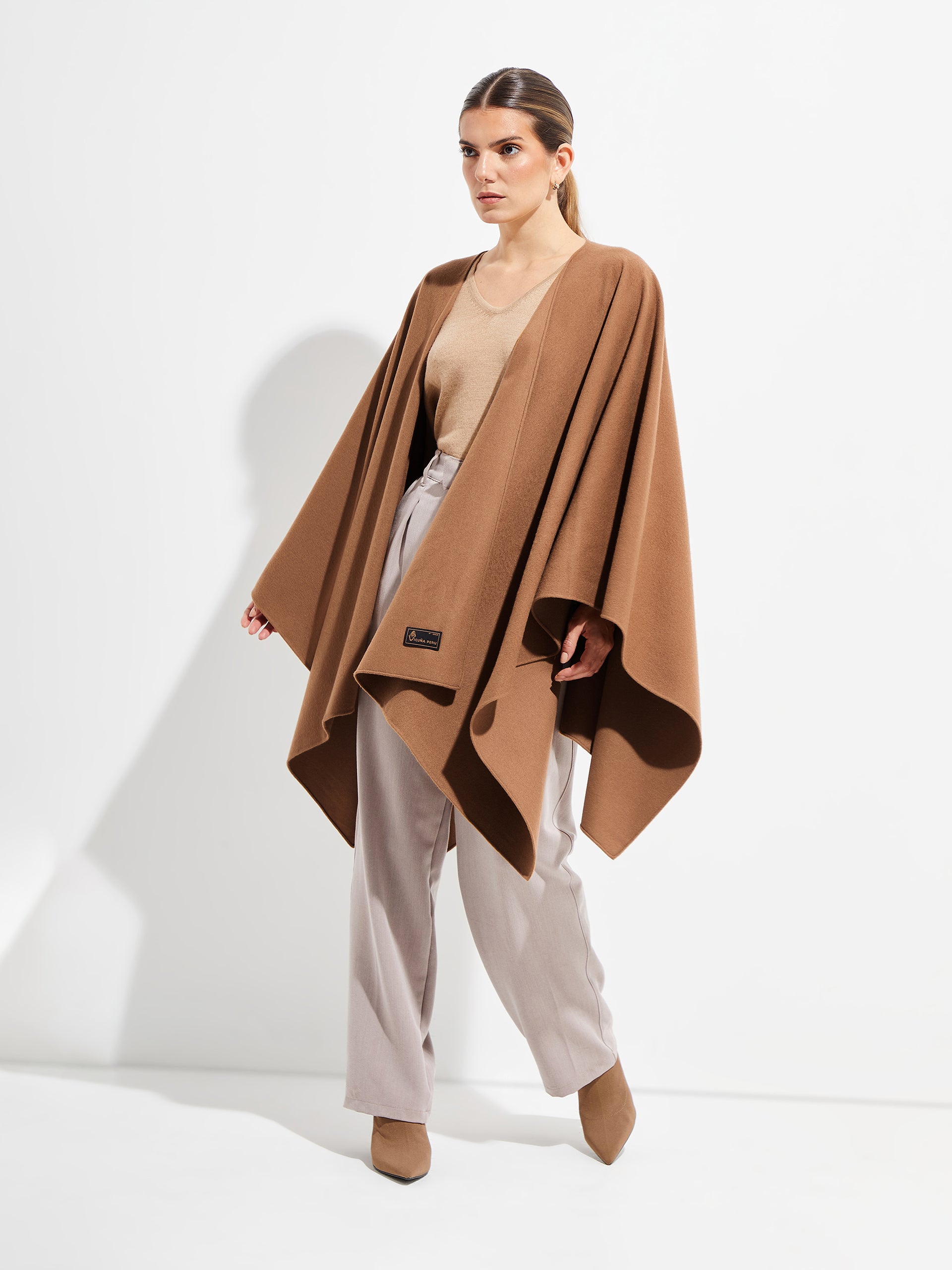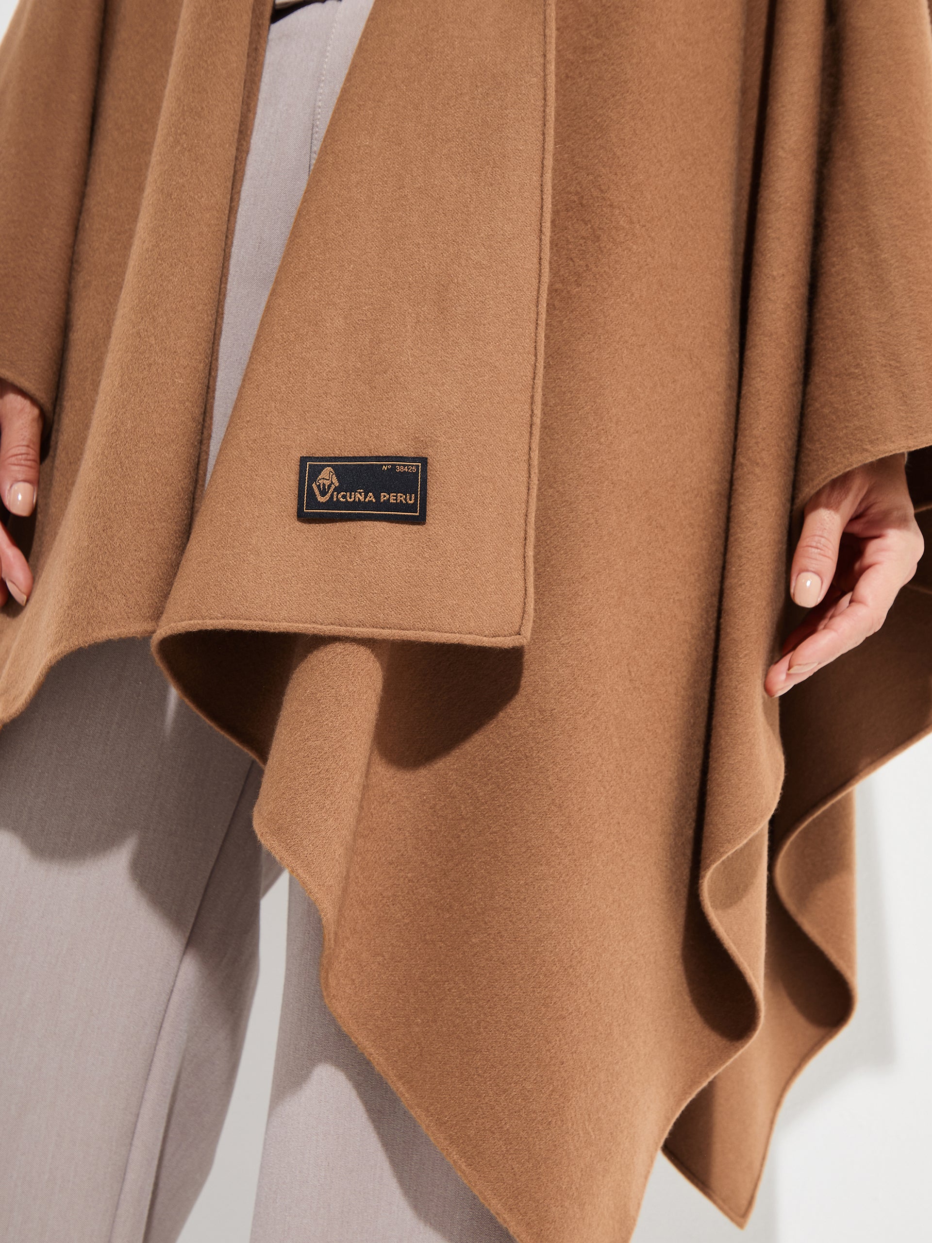 Nuestra elegante y suave capa Bárbara está hecha íntegramente con fibra de vicuña, la más fina del mundo. | Material predominante: Vicuña