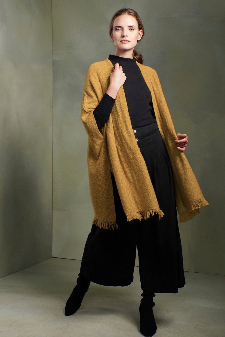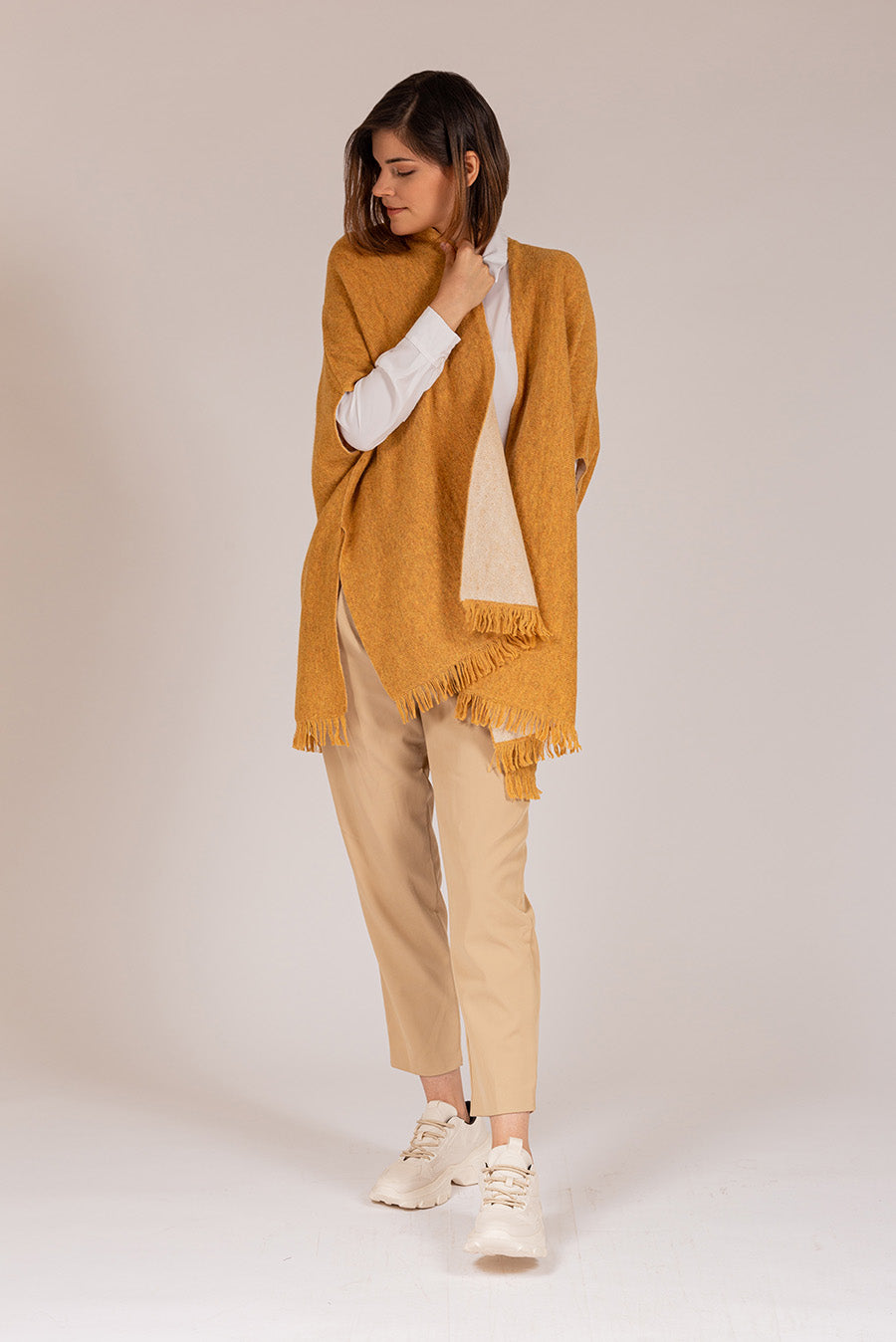 Capa Tibra De Baby Alpaca Color Senape & Ecru