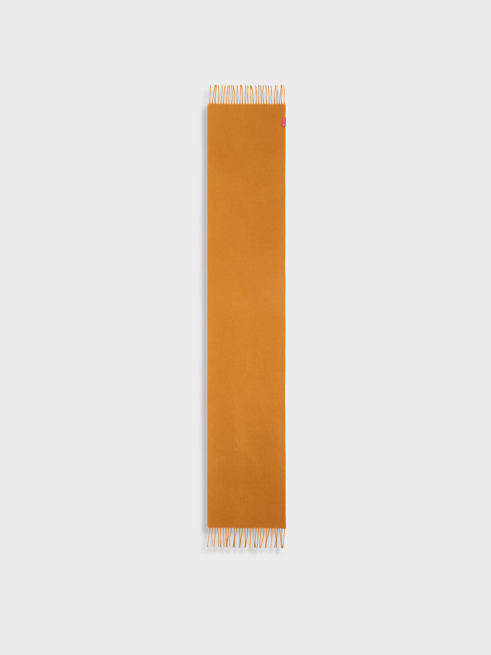 Chalina Adrian en tonalidad amarillo, de diseño de color entero con bordes terminados en flecos gruesos. Confeccionada en baby alpaca, brinda calidez y suavidad. | Material predominante: Baby Alpaca