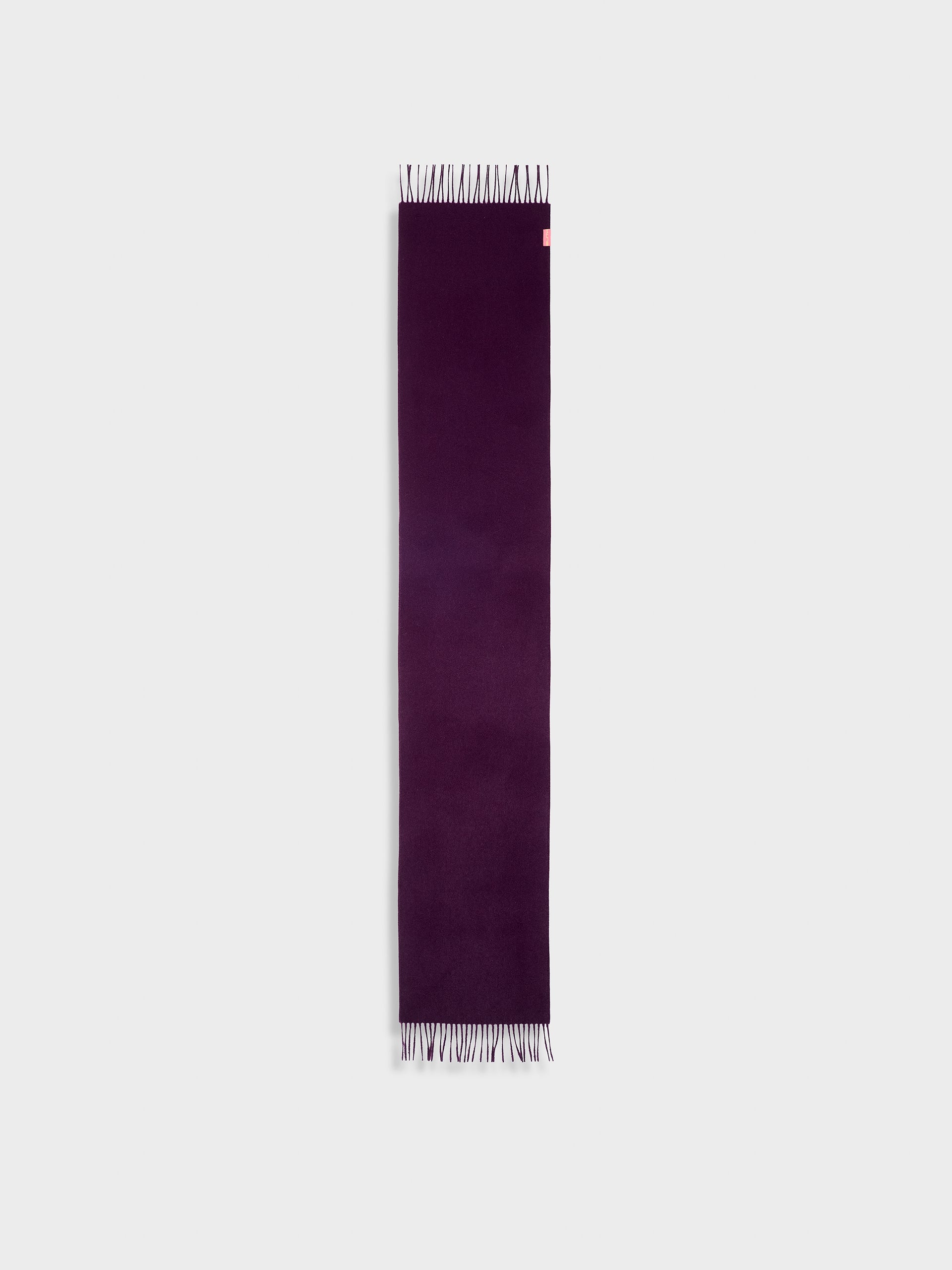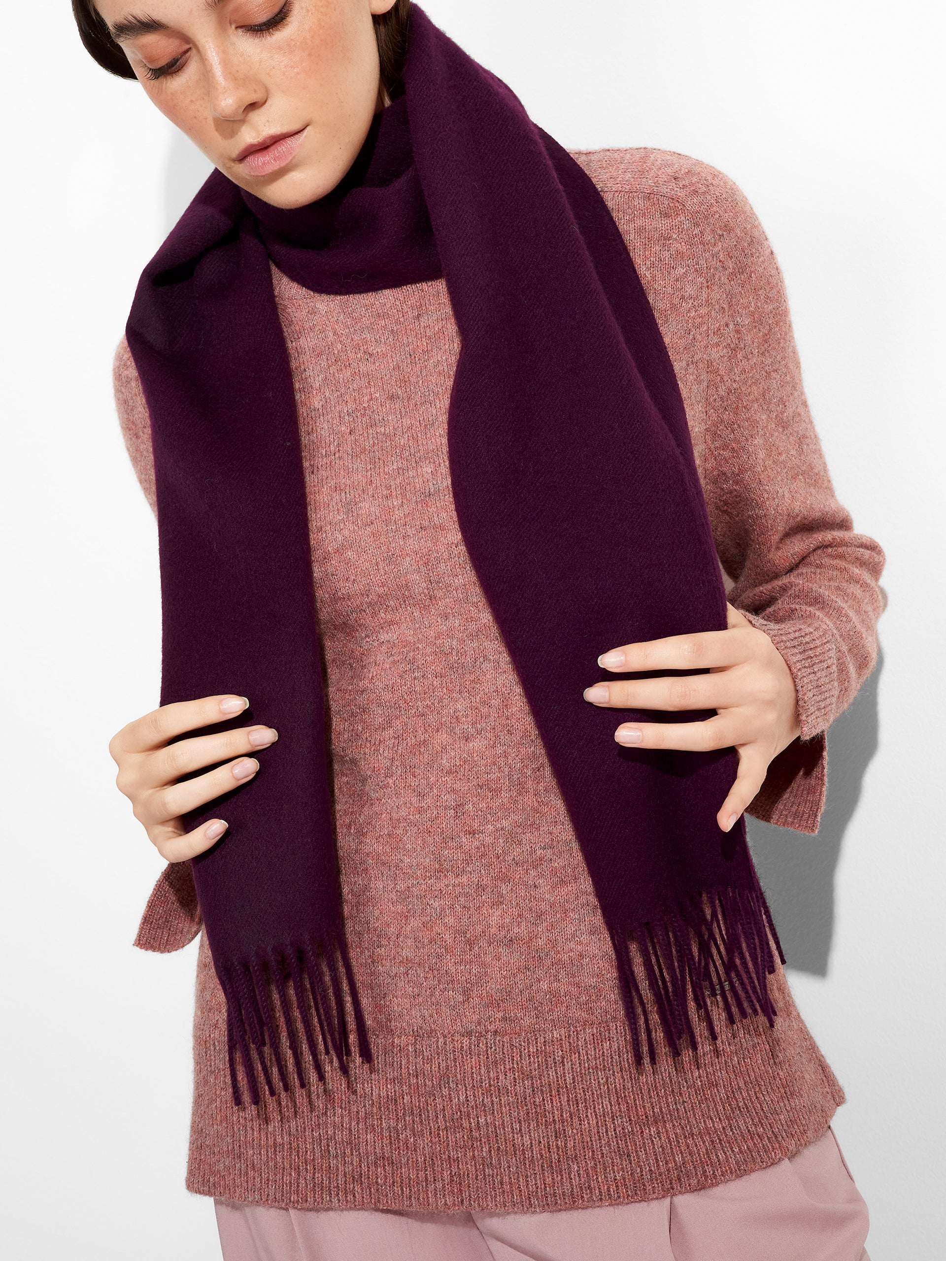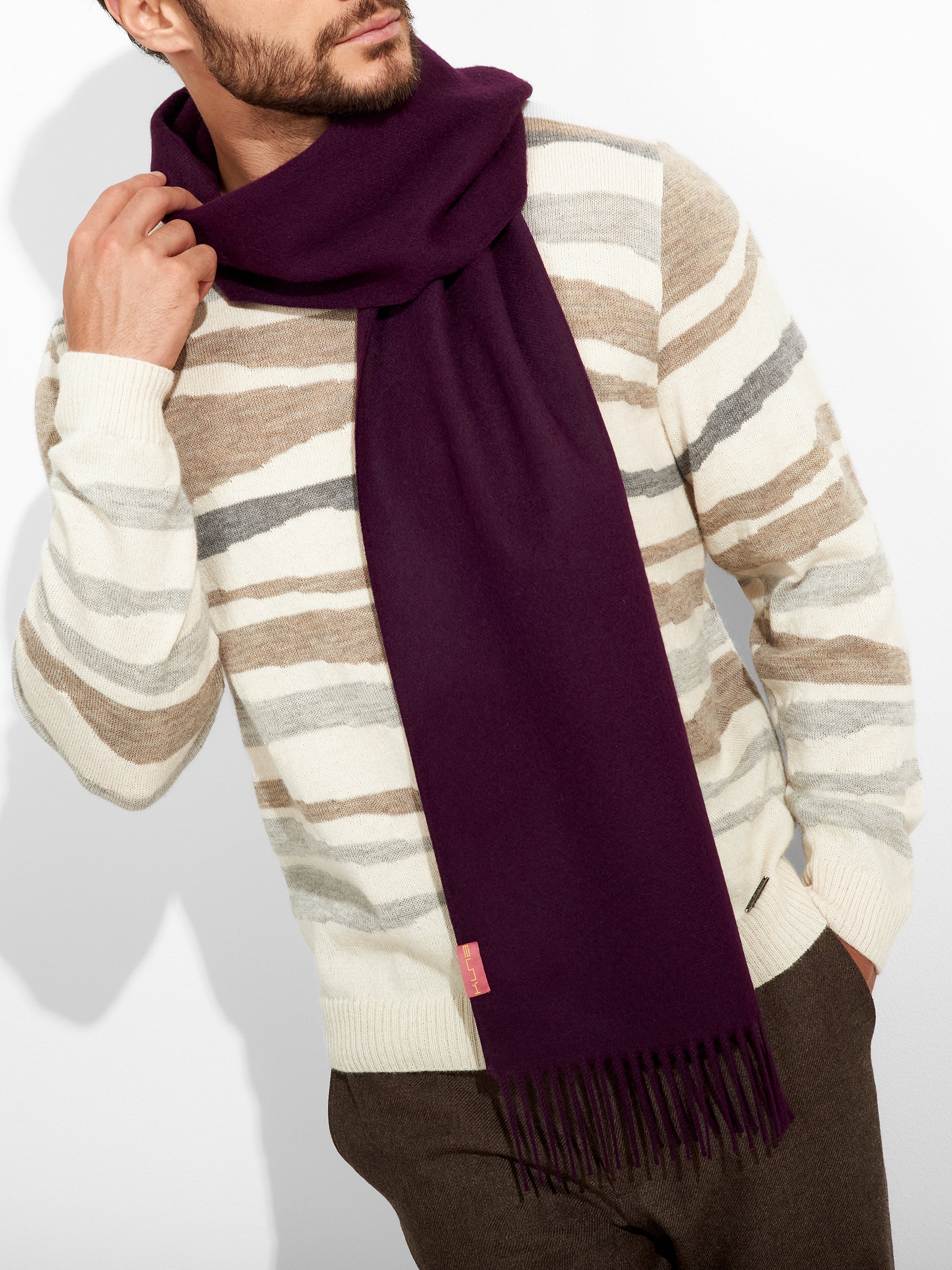 Chalina Adrian en tonalidad morado, de diseño de color entero con bordes terminados en flecos gruesos. Confeccionada en baby alpaca, brinda calidez y suavidad. | Material predominante: Baby Alpaca