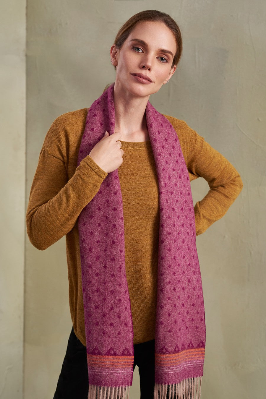 Elegante chalina de baby alpaca que juega con diferentes diseños. Perfecto para toda ocasión. | Material predominante: Baby Alpaca