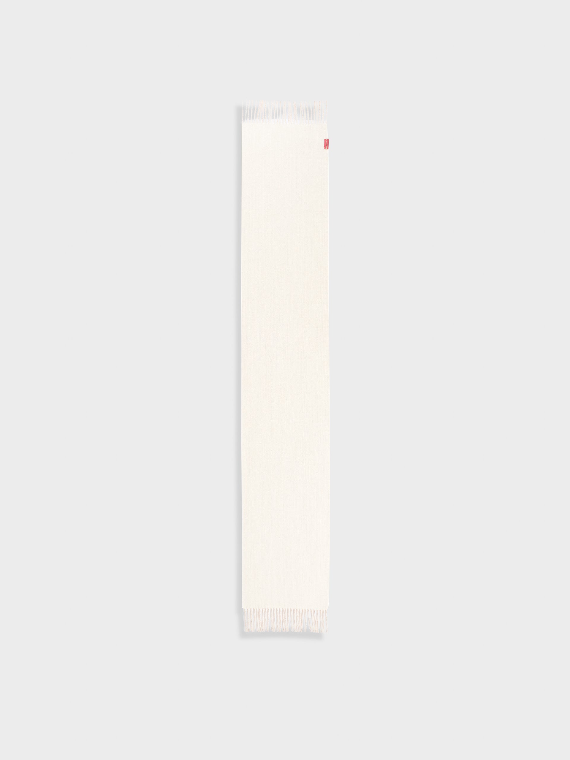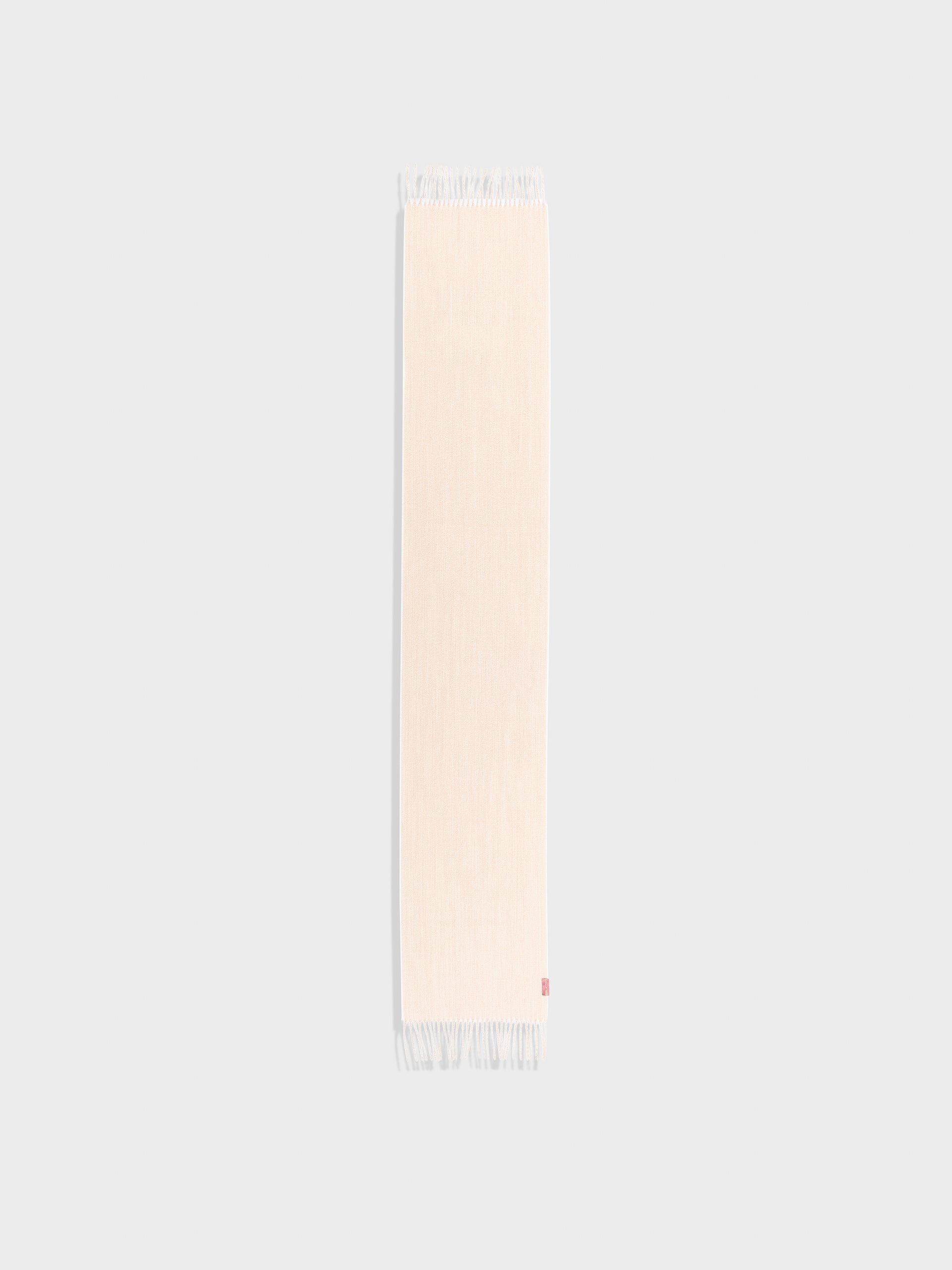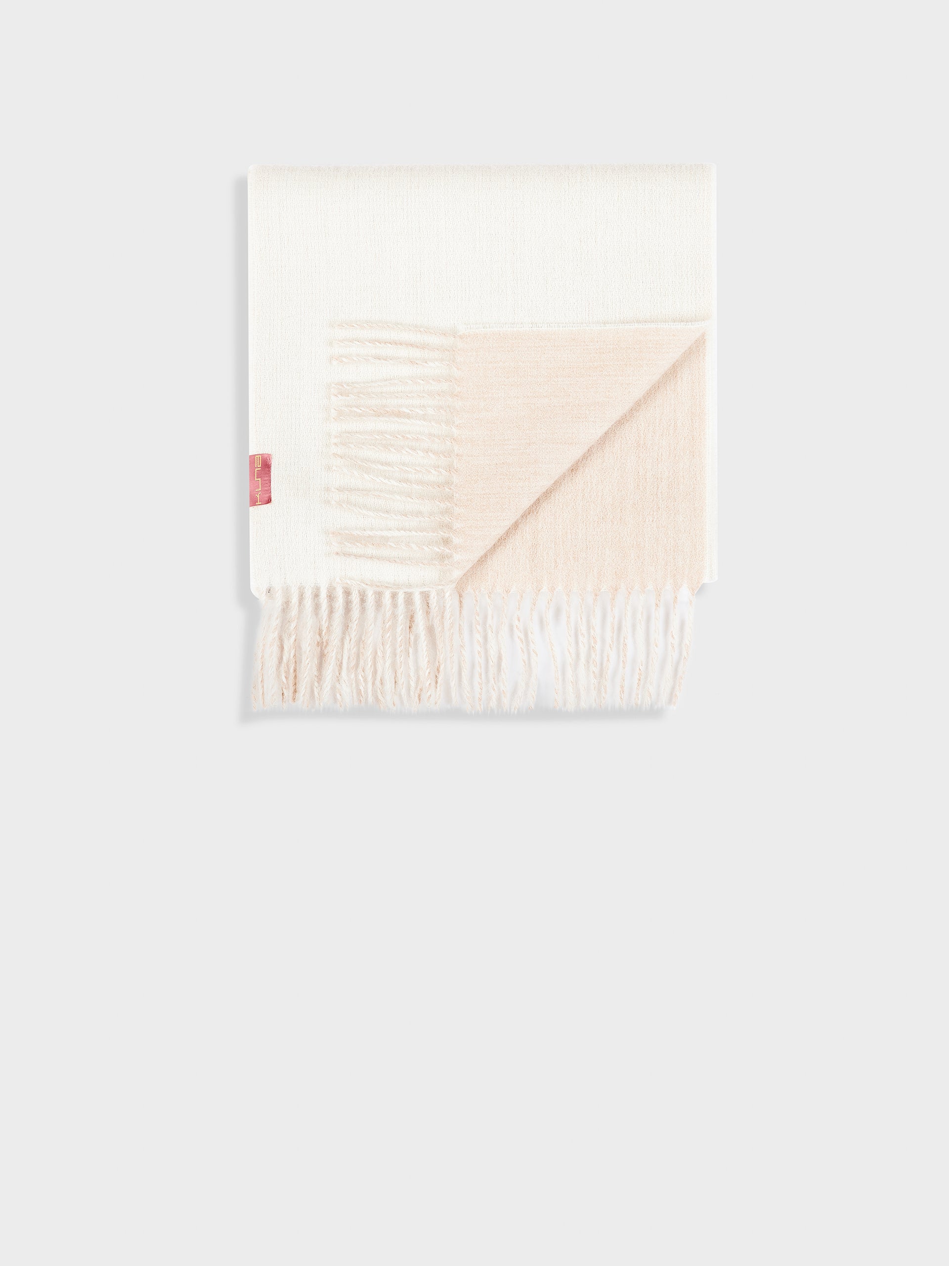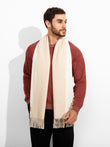 Chalina Tundra B en tonalidad beige, con diseño de doble cara que resalta dos colores predominantes. Acabada con bordes de flecos gruesos. Confeccionada en baby alpaca eco, brinda calidez y suavidad. | Material predominante: Baby Alpaca