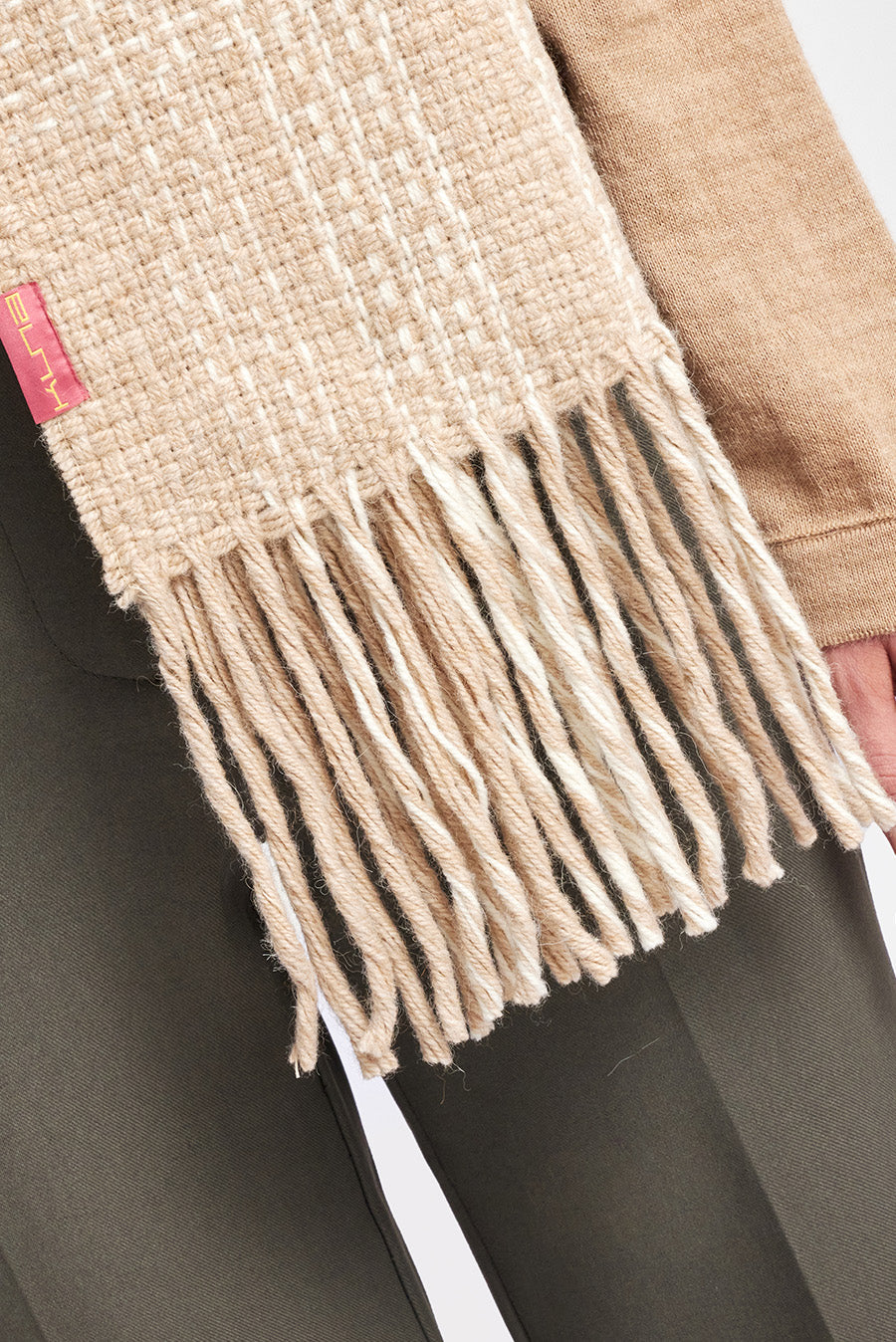 Un clásico diseño de rayas combina tonalidades neutras para ennoblecer con un toque refinado nuestra chalina Weed. 100% baby alpaca, es suave y acogedora. | Material predominante: Baby Alpaca