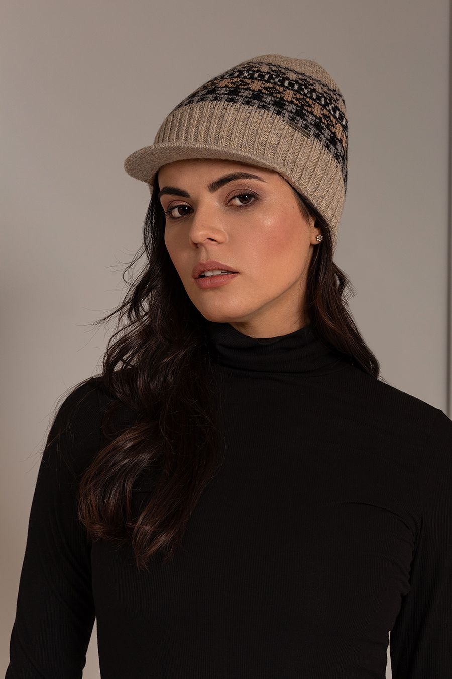 El estilo casual de este gorro se encuentra con el refinado aspecto de nuestro de baby alpaca para darle vida a un accesorio cálido y con mucho estilo. La tela polar del interior enriquece el confort y la protección, mientras que la pequeña visera completa el accesorio con un toque deportivo. Llévalo a juego con nuestro cuello Ualter. | Material predominante: Baby Alpaca