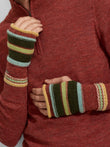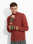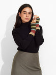 Guantes Zanni en tonalidad rojo, con diseño de rayas horizontales que aportan un estilo distintivo. Presentan un ajuste ceñido. Confeccionados en baby alpaca, ofrecen suavidad, calidez y confort. | Material predominante: Baby Alpaca