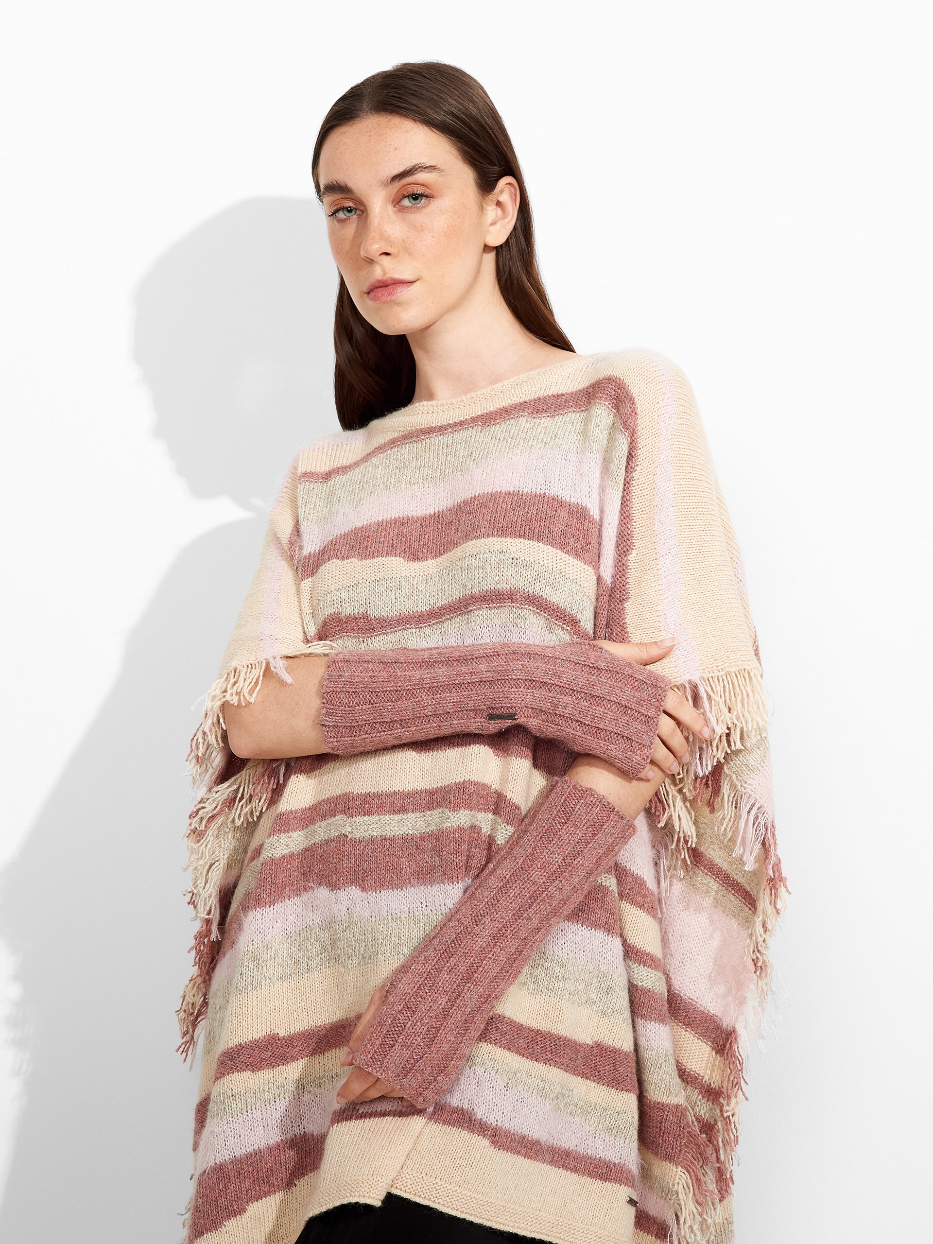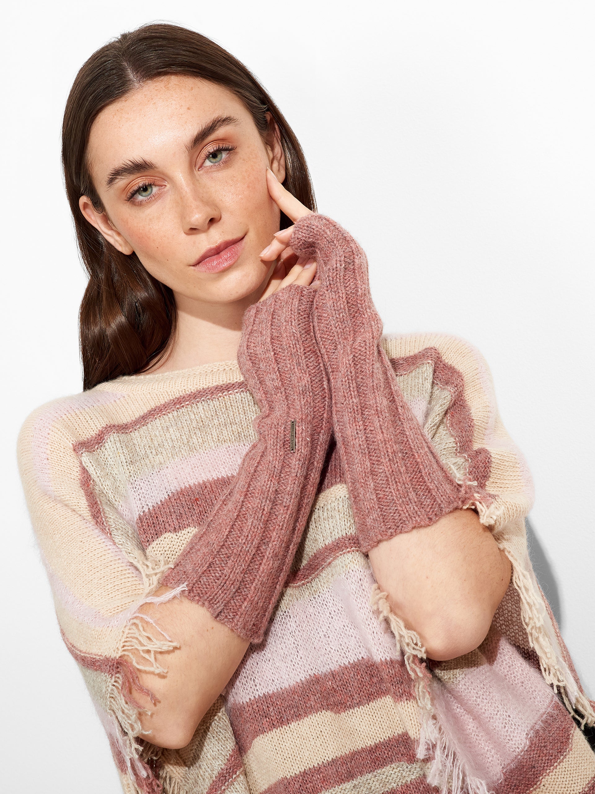 Guantes Zephir en tonalidad rosado, confeccionados en tejido de punto con líneas verticales prominentes que aportan textura y estilo. Confeccionado en baby alpaca, brinda suavidad y calidez. | Material predominante: Baby Alpaca
