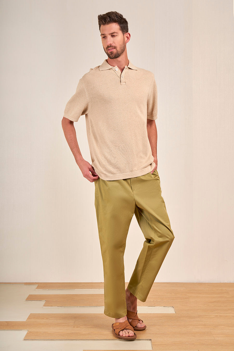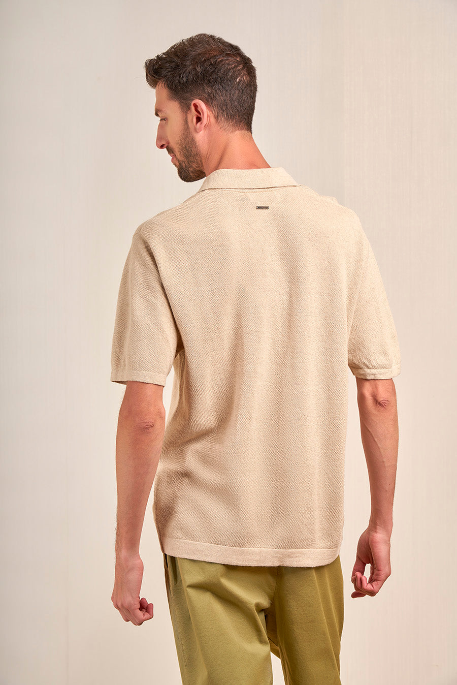 Clásico polo en algodón pima y lino. Prenda minimalista de manga corta, con cuello y dos botones. Un básico ideal para esta temporada. | Material predominante: Lino & Algodón