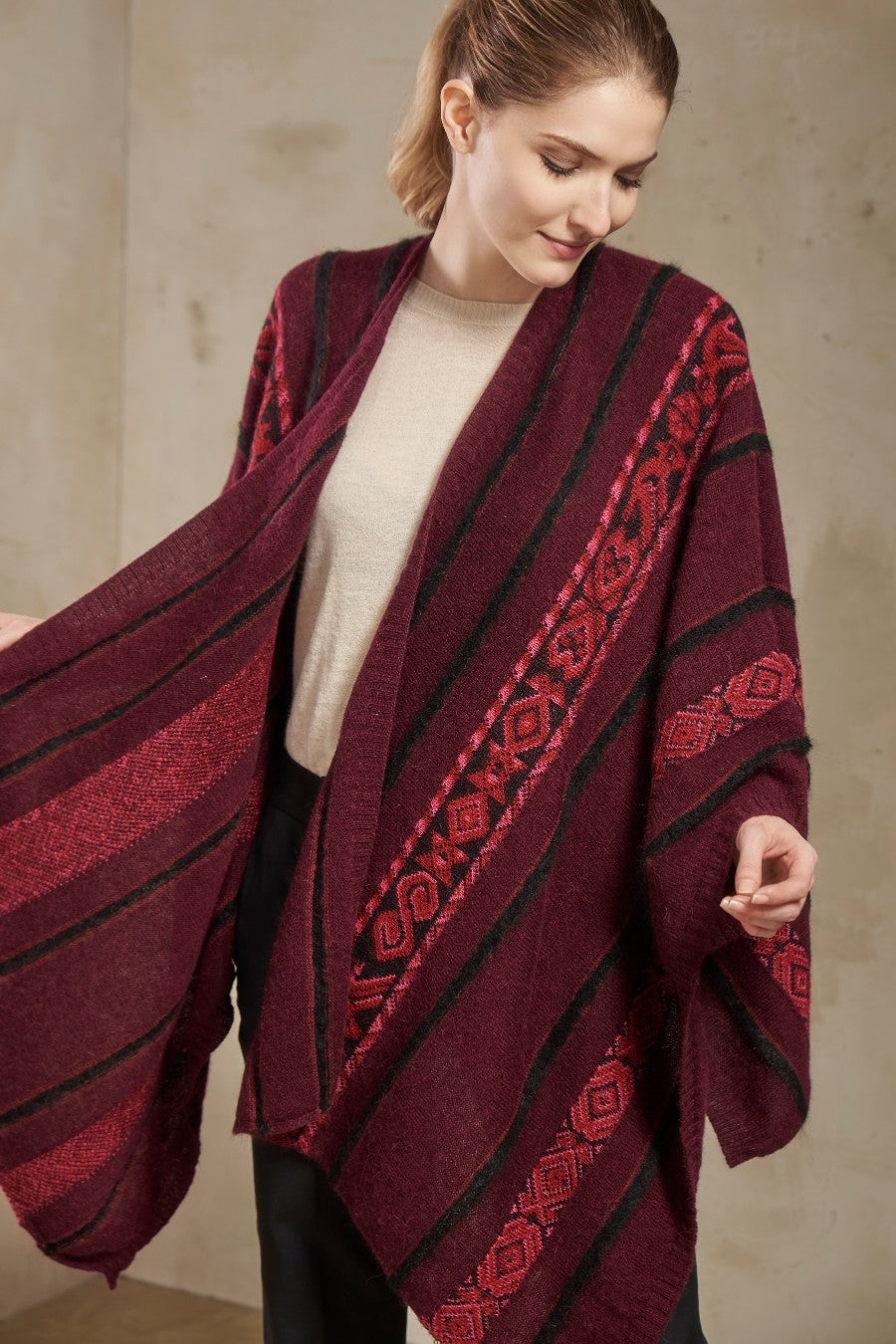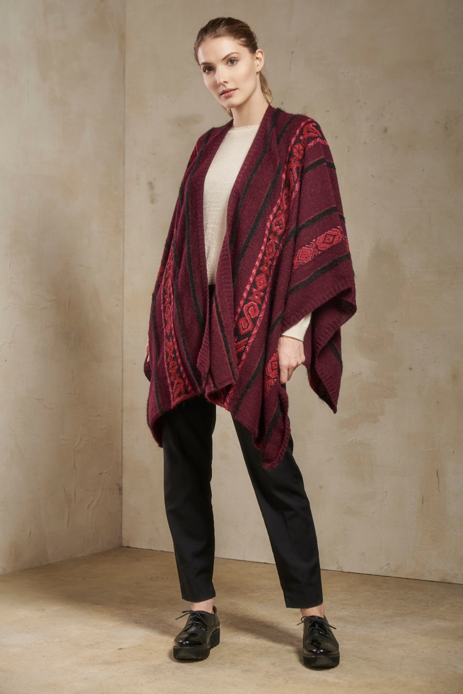 Poncho Salinas De Baby Alpaca Color Burgundy