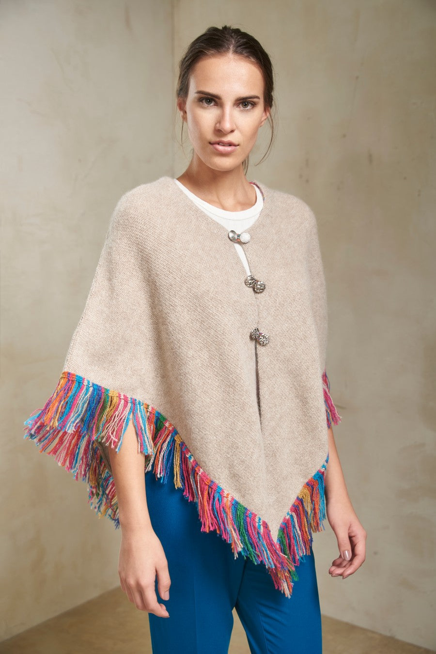 Poncho Socabaya De Baby Alpaca Color Sabbia