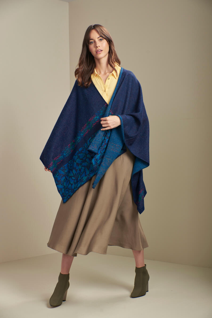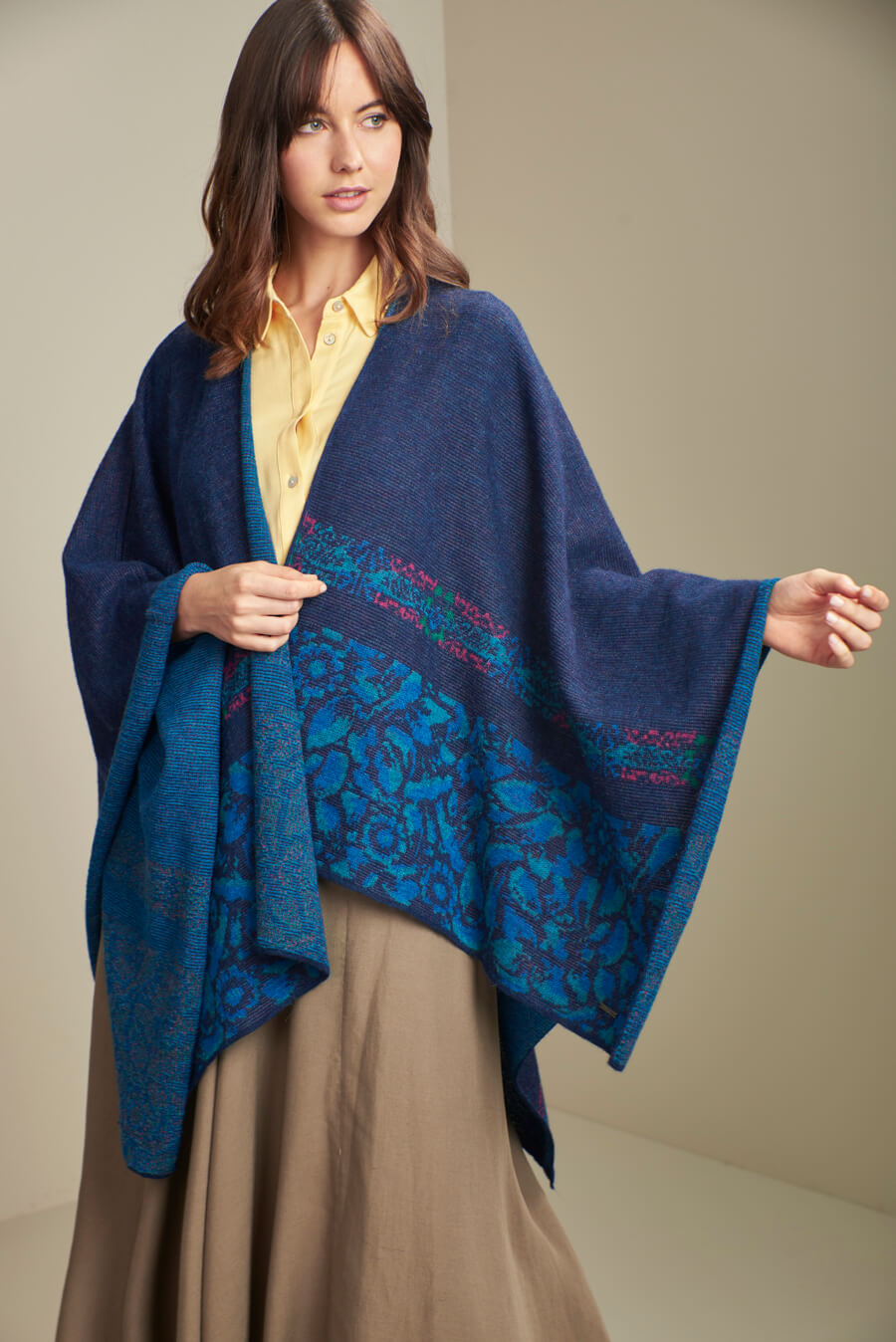 Delicada prenda, con gran movimiento, inspirada en las pinturas de los retablos peruanos. Nuestro poncho Ultrachic es una de las prendas mas vistosas e importantes de esta nueva colección. | Material predominante: Baby Alpaca