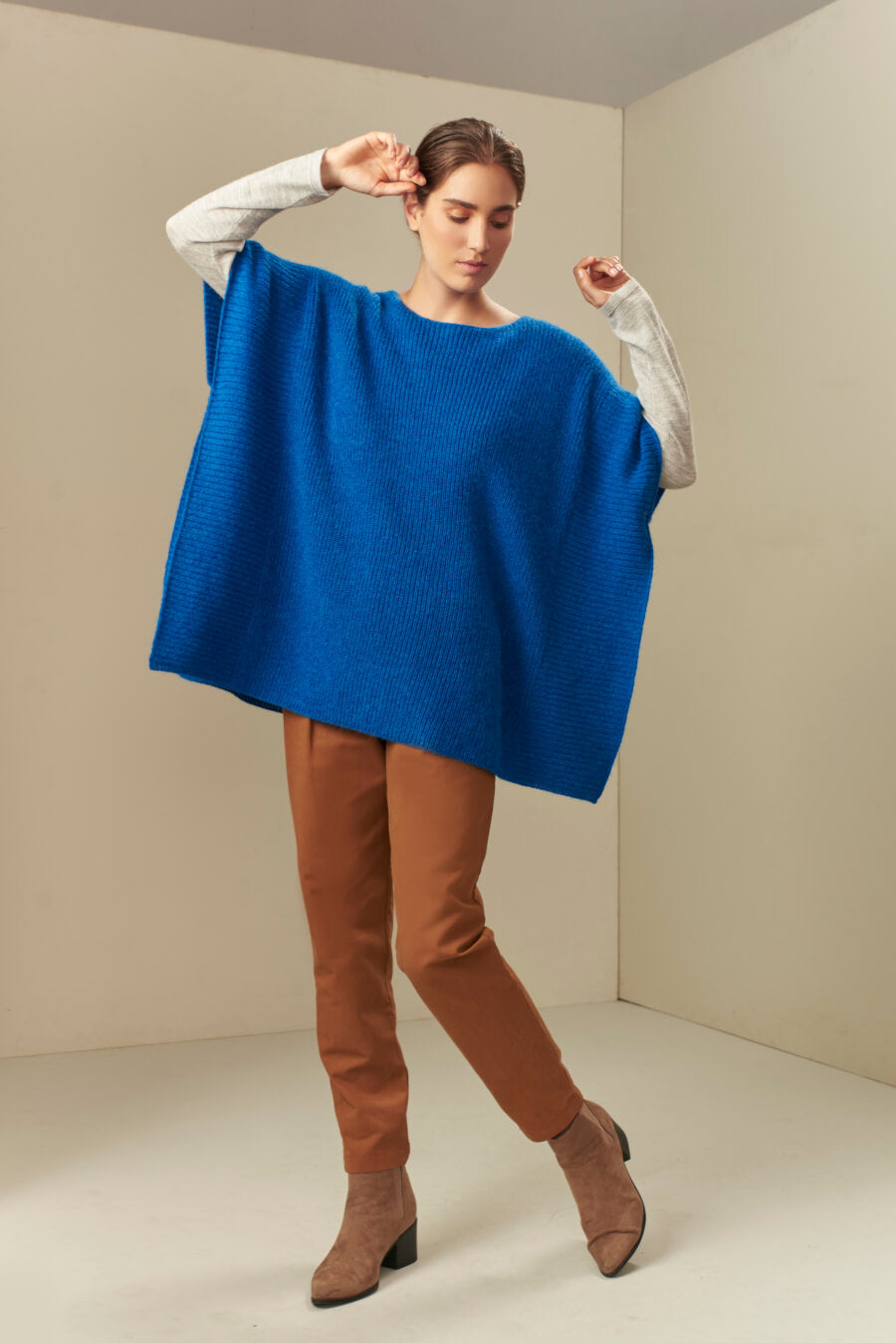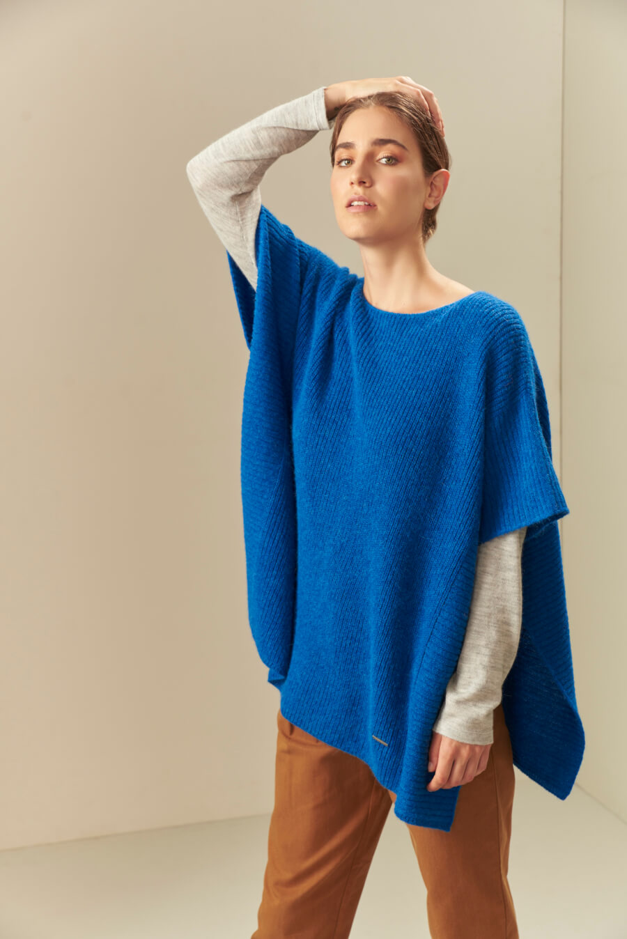 Este amplio poncho tejido en punto medio inglés es elegante y casual, perfecto para dar un toque de sofisticación a tus looks de invierno. | Material predominante: Baby Alpaca