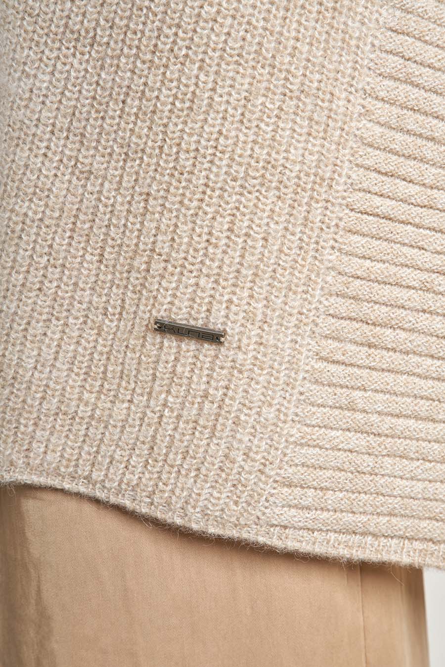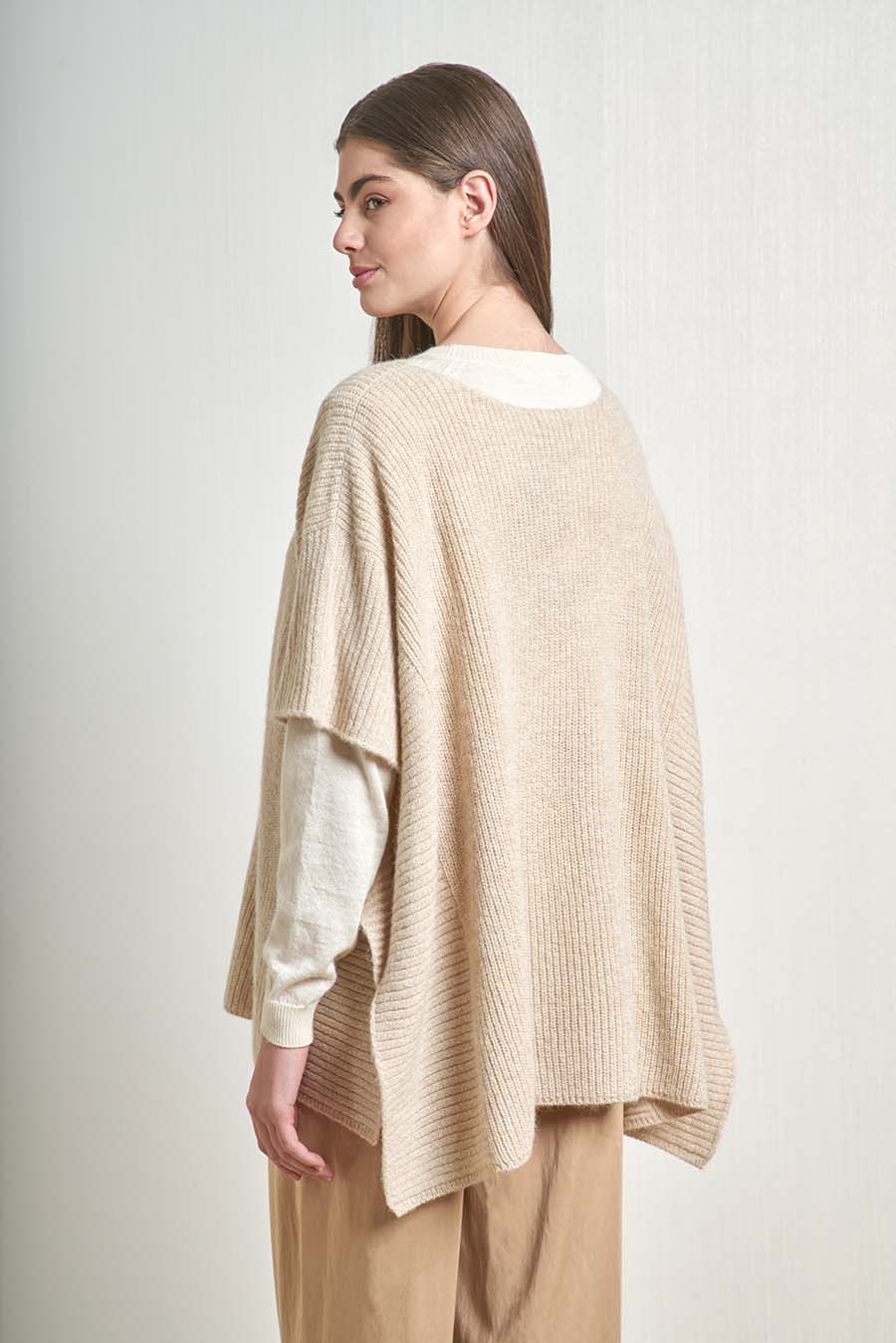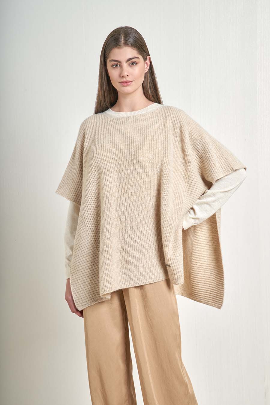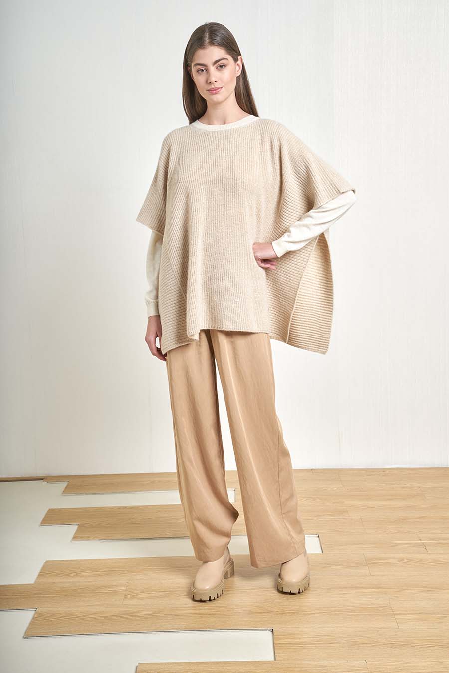 Este amplio poncho tejido en punto medio inglés es elegante y casual, perfecto para dar un toque de sofisticación a tus looks de invierno. | Material predominante: Baby Alpaca