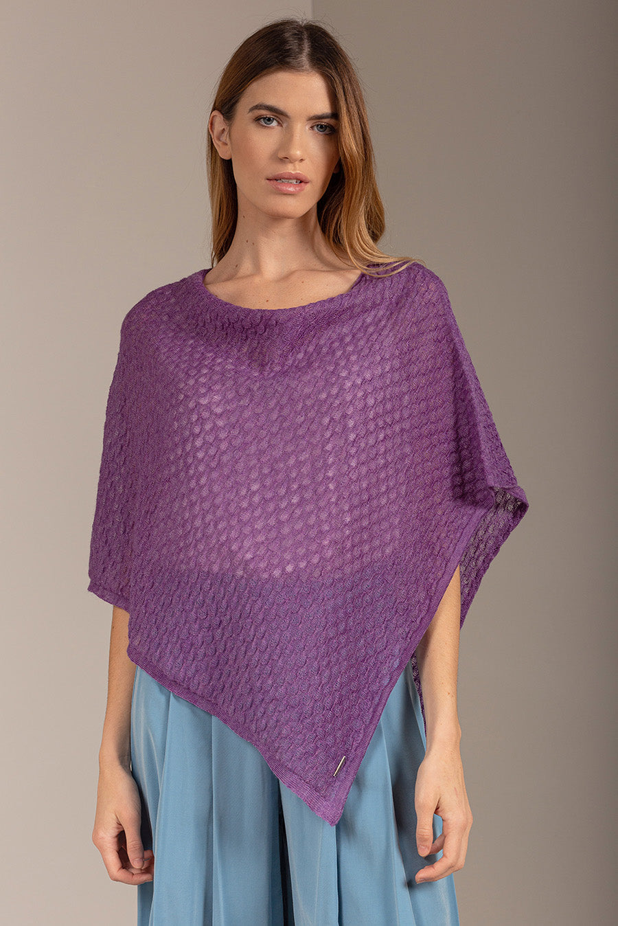 Un suave tejido de punto estructurado le da vida a este ligero poncho de baby alpaca y seda. Combínalo con vestidos y faldas para salidas casuales durante el verano | Material predominante: Baby Alpaca